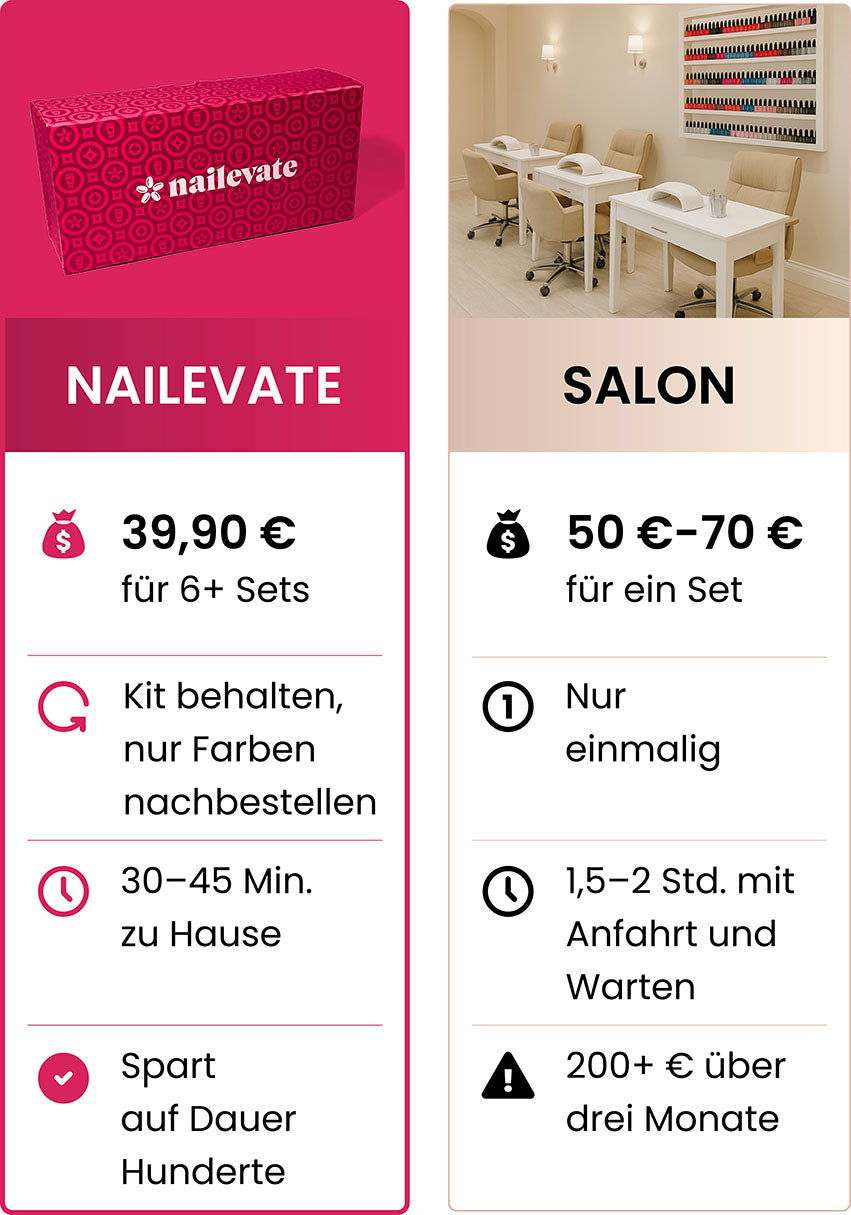 Müde von teuren und zeitaufwändigen Salonterminen? Nailevate hat die Lösung.